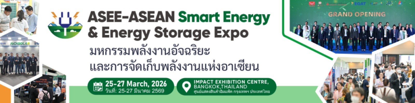 The ASEAN Smart Energy & Energy Storage Expo 2026 will take place from March 25 to 27, 2026, at the IMPACT Exhibition Centre in Bangkok, Thailand. Organized with the support of the Ministry of Energy of Thailand, EGAT, and TCEB, the expo will serve as a key international platform for showcasing advancements in solar energy, energy storage, and smart grid technologies.